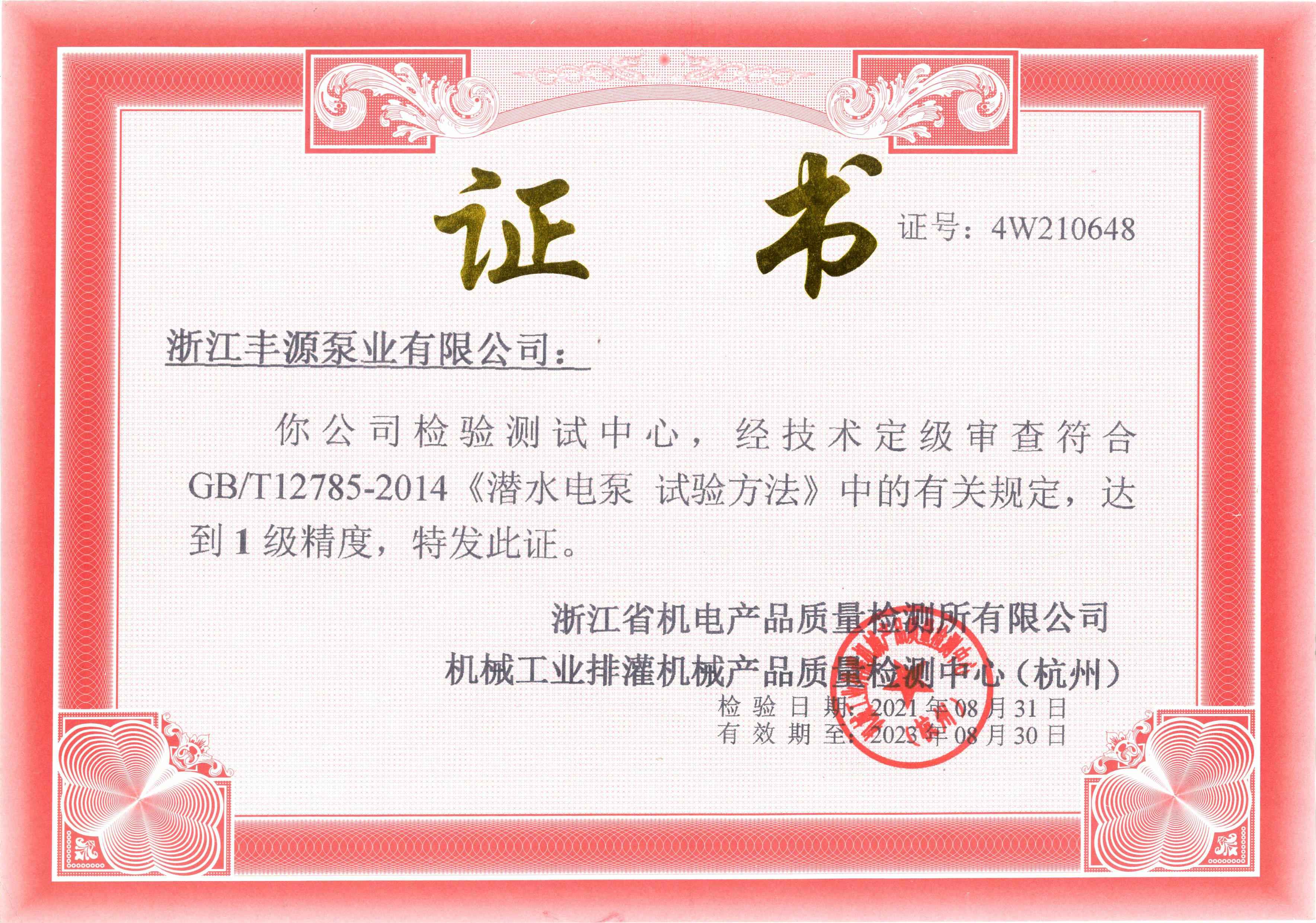公司检测中心荣达省级水泵检测1级精度